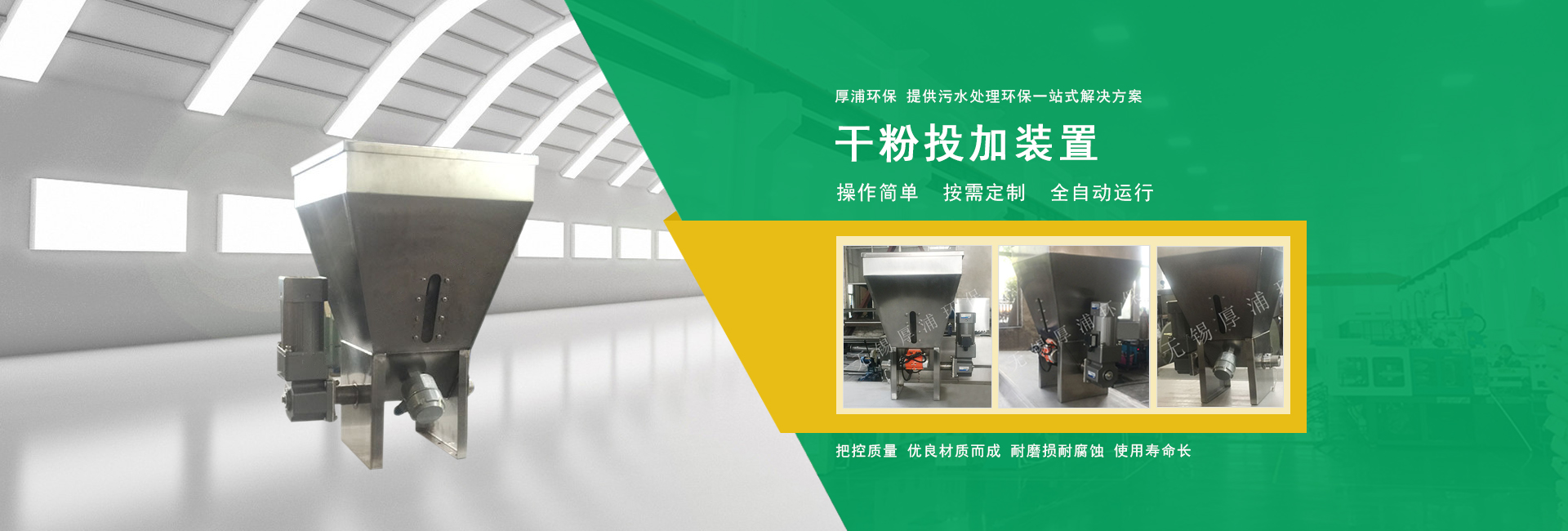 無錫厚浦環(huán)保科技有限公司專業(yè)生產干粉投加/在線稀釋裝置 網站建設:無錫網科 備案號:蘇ICP備14012459號-6 蘇公網安備32028202232136號